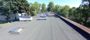 - Dokręcić listwy dociskowe papy – attyka.