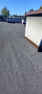 - Pod papą miejscami występują pęcherze – należy zlikwidować poprzez nacięcie, podgrzanie i przyklejenie papy, dodatkowo należy wkleić w miejscu naprawy łatę z papy o wym 1 x 1 m.