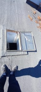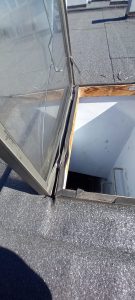 - Wyłaz dachowy jest nieszczelny, urwane zawiasy, pęknięta szyba. W czasie opadów deszczu następuje zalewanie klatki schodowej. Sugerowana wymiana.